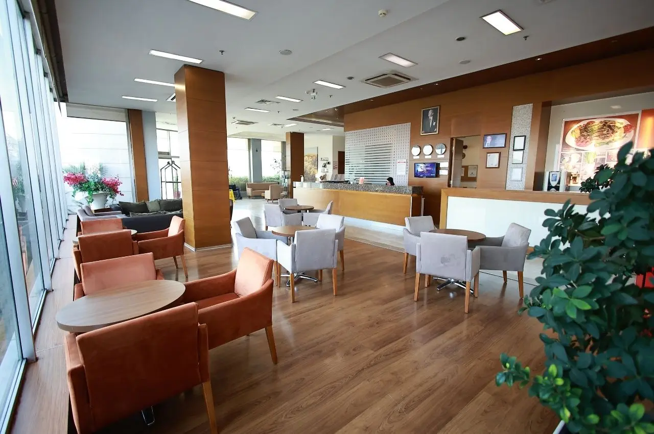 Otelimizin lobi dinlenme alanı, misafirlerimize konforlu ve huzurlu bir atmosfer sunar. Günün yorgunluğunu atarken, sıcak ve soğuk içecek ikramlarımızla keyifli bir mola verebilir, rahat oturma alanlarımızda dinlenebilirsiniz. Şık ve ferah tasarımıyla lobimiz, hem bireysel dinlenme hem de dostlarınızla hoş sohbetler için ideal bir ortam sunuyor.