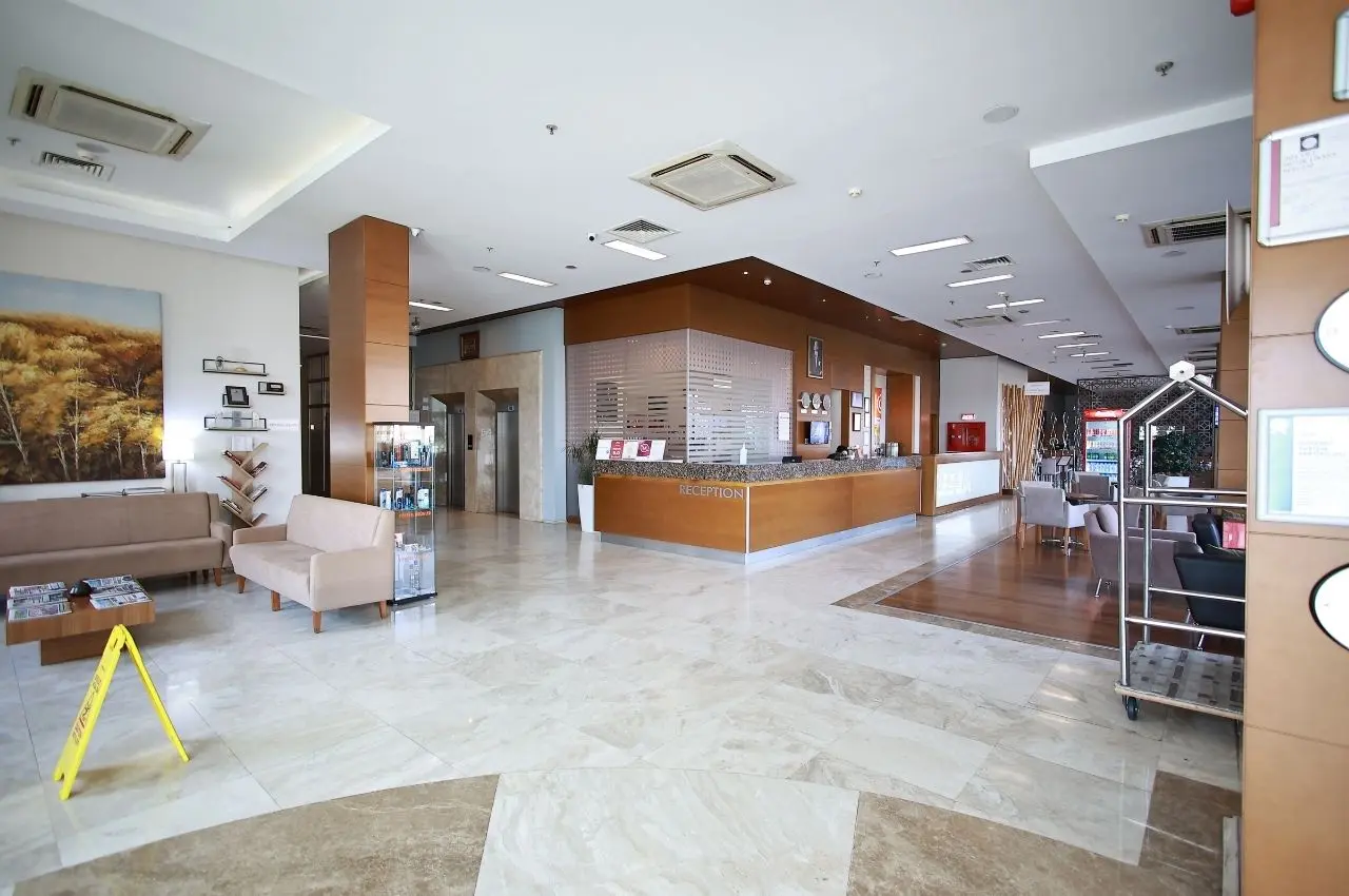Otelimizin zarif ve konforlu lobisi, misafirlerimize sıcak bir karşılama sunarken dinlenmek ve keyifli vakit geçirmek için ideal bir alan yaratıyor. Sıcak ve soğuk içecek ikramları, rahat oturma alanları ve şık dekorasyonuyla lobimiz, toplantılarınızı gerçekleştirebileceğiniz veya günlük yorgunluğunuzu atabileceğiniz huzurlu bir atmosfer sunmaktadır.